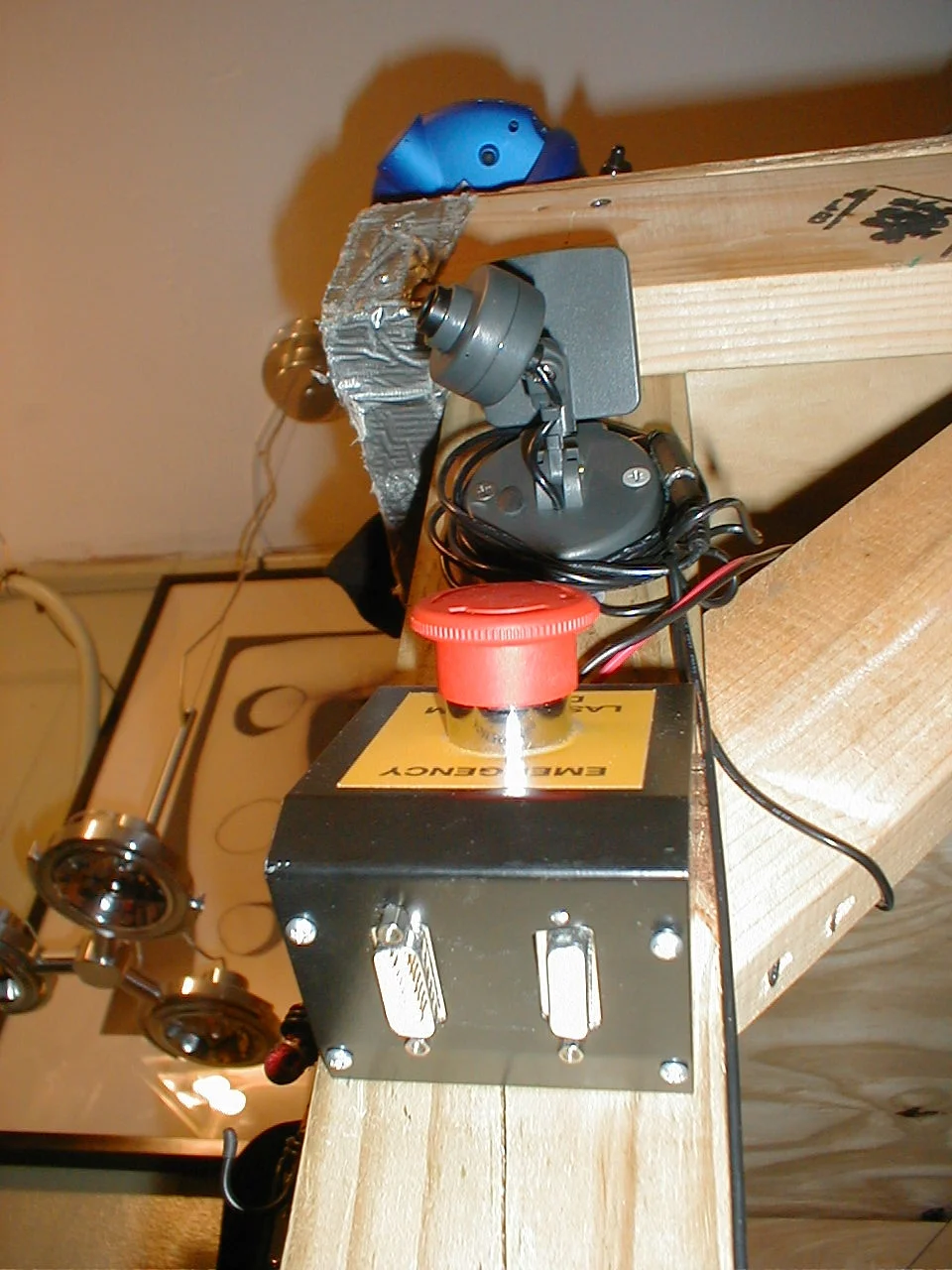 At the heart of the system is the main controller. Housed in a locked steel case is a M1000 Mini ITX motherboard. As a fail-safe (i.e. if someone were to cut power to the dorm in order to break into the room...), a rechargeable battery was wired in, which can power the system for up to three hours.